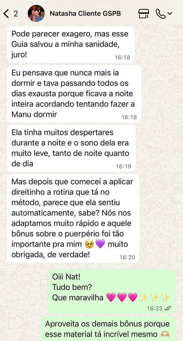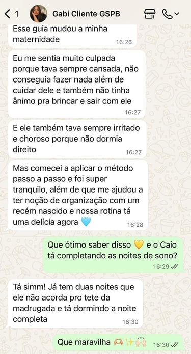 Veja o que algumas mamães conquistaram em pouquíssimo tempo, aplicando o passo a passo validado, ensinado dentro do método Guia do Sono Pleno para Bebês:
